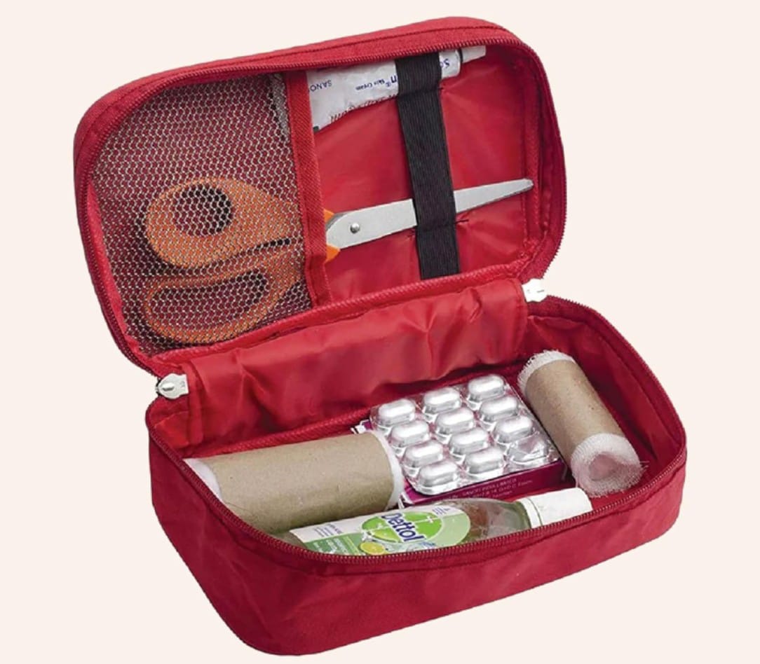 • Includes bandages, antiseptics, burn creams, and pain relievers.